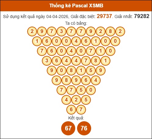 Bình luận xổ số Miền Bắc 5/4 dựa vào tam giác Pascale (được tính theo giải GĐB và giải Nhất ngày hôm trước):