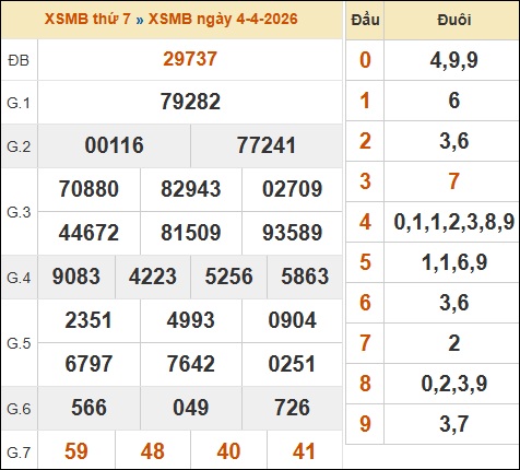Xem lại kết quả xổ số miền Bắc ngày 04/04/2026 hôm qua