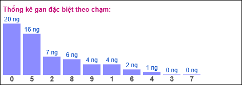 ⇒ Theo dõi thống kê trên, ta thấy chạm 0 lâu chưa ra nhất (bao gồm 19 cặp số có chứa số 0), và đã 20 ngày chưa xuất hiện.