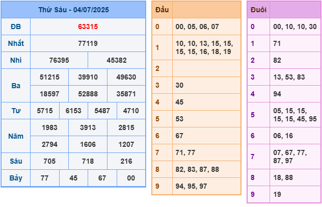Bảng kết quả hôm qua ngày 04/7/2025