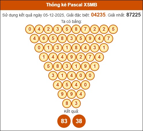 Bình luận kết quả xổ số Miền Bắc 06/12/2025 dựa vào tam giác Pascale (được tính theo giải GĐB và giải Nhất ngày hôm trước):