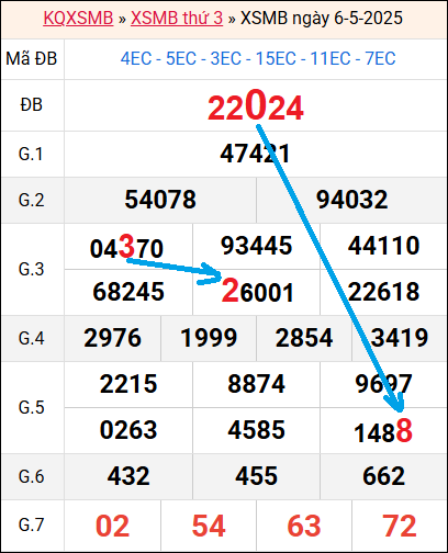 Bảng kết quả hôm qua ngày 6/5/2025