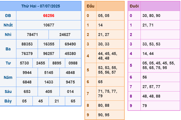 - Dự Trên kết quả XSMB ngày: 07/07/2025