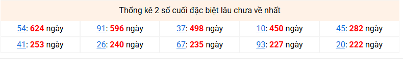 ⚡ Thống kê giải đặc biệt lâu chưa về: 54 - 91 - 37 - 10 - 45
