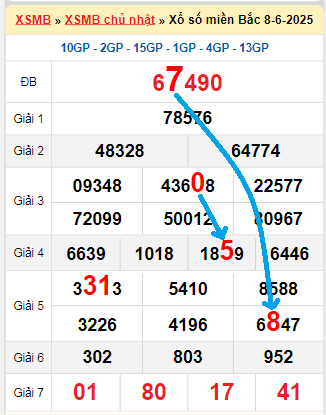 Kết quả xổ số miền Bắc ngày 8/6/2025