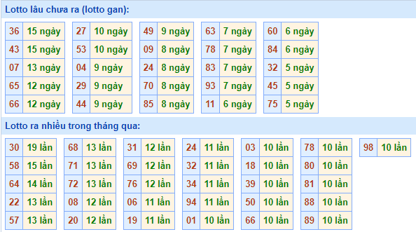 ⇒ Xem bảng tần suất loto miền Bắc từ 00 đến 99 trong tháng chi tiết nhất tại: