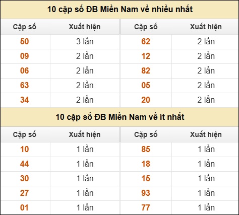 ⚡ 10 cặp số ĐB Miền Nam về nhiều nhất/ ít nhất tính đến ngày 10/08/2025: