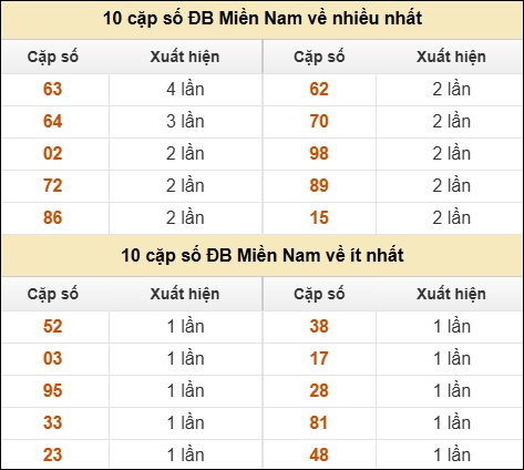 ⚡ 10 cặp số ĐB Miền Nam về nhiều nhất/ ít nhất tính đến ngày 12/08/2025: