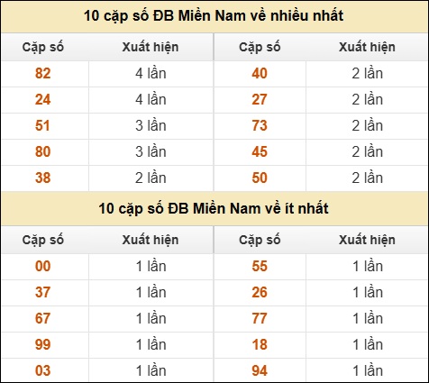 ⚡ 10 cặp số ĐB Miền Nam về nhiều nhất/ ít nhất tính đến ngày 14/12/2025: