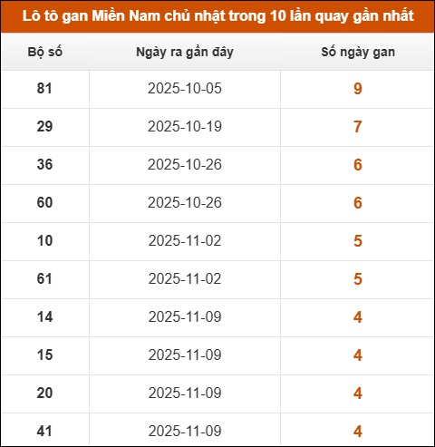 ⚡ Thống kê lô tô gan miền Nam chủ nhật ngày 14 tháng 12 năm 2025: