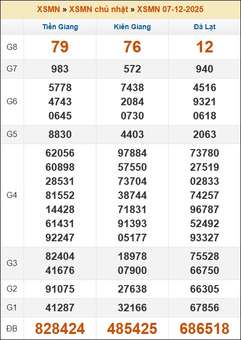 Kết quả xổ số Miền Nam 07/12/2025 chủ nhật tuần trước