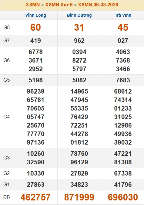 Tham khảo nhận định lô tô 3 đài (Vĩnh Long, Bình Dương, Trà Vinh) xổ số miền Nam hôm nay miễn phí.