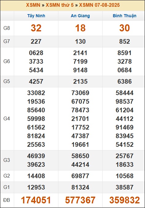 Bình luận kết quả kỳ trước, từ đó nhận định xổ số miền Nam 14/8/2025 hôm nay gồm 3 tỉnh: Tây Ninh, An Giang, Bình Thuận.