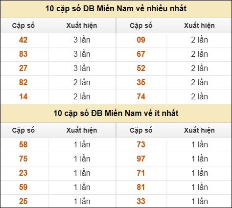 ⚡ 10 cặp số ĐB Miền Nam về nhiều nhất/ ít nhất tính đến ngày 14/8/2025: