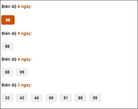 Đầu 9: 6 ngày, Đầu 7: 5 ngày, Đầu 2: 3 ngày, Đầu 8: 3 ngày, Đầu 0: 1 ngày