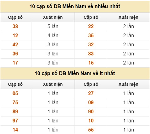 ⚡ 10 cặp số ĐB Miền Nam về nhiều nhất/ ít nhất tính đến ngày 16/8/2025: