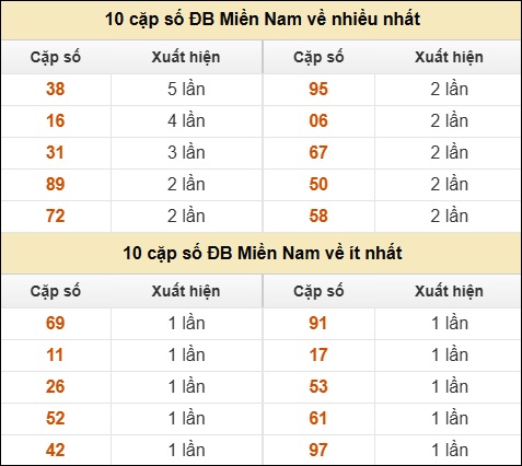 ⚡ 10 cặp số ĐB Miền Nam về nhiều nhất/ ít nhất tính đến ngày 20/12/2025: