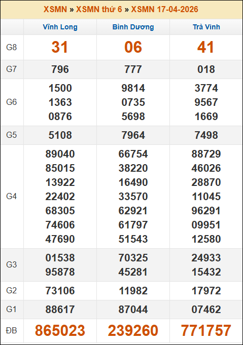 Xem kết quả kỳ trước, từ đó nhận định hiệu quả kết quả XSMN 24/4 hôm nay gồm 3 tỉnh: Vĩnh Long, Bình Dương, Trà Vinh