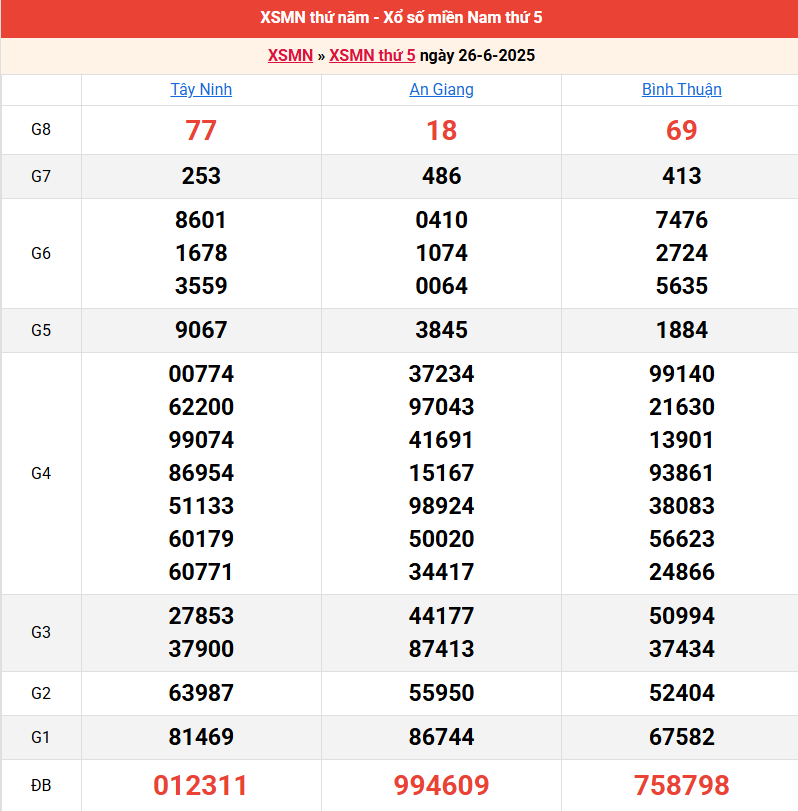 Bảng kết quả kỳ trước 26/6/2025