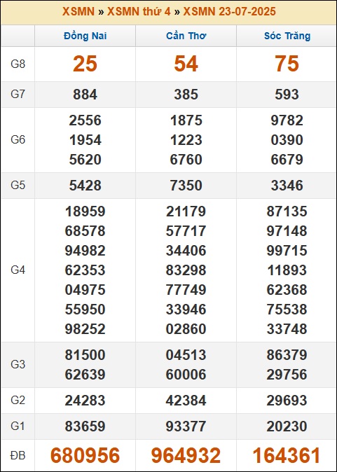 Kết quả xổ số Miền Nam ngày 23/07/2025 thứ 4 tuần trước