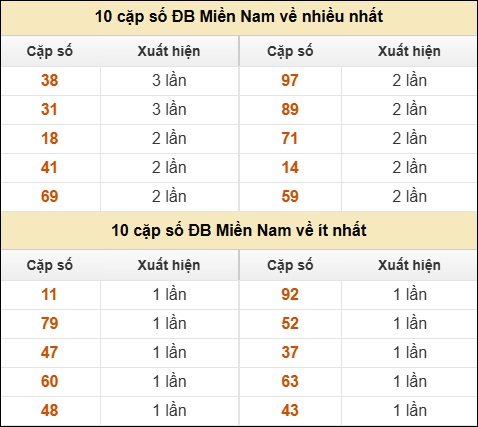 ⚡ 10 cặp số ĐB Miền Nam về nhiều nhất/ ít nhất tính đến ngày 04/03/2026: