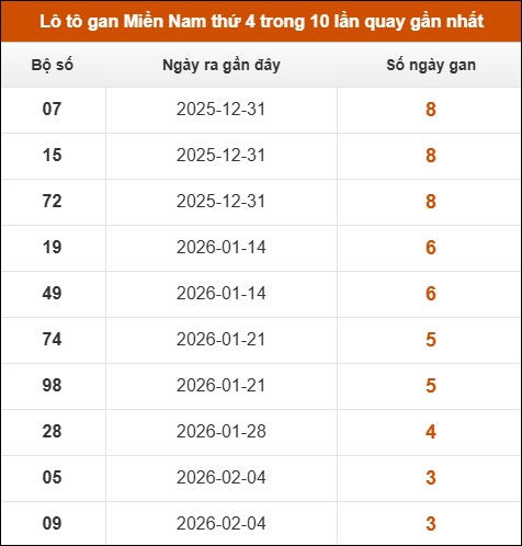 ⚡ Thống kê loto gan miền Nam thứ 4 ngày 4 tháng 3 năm 2026: