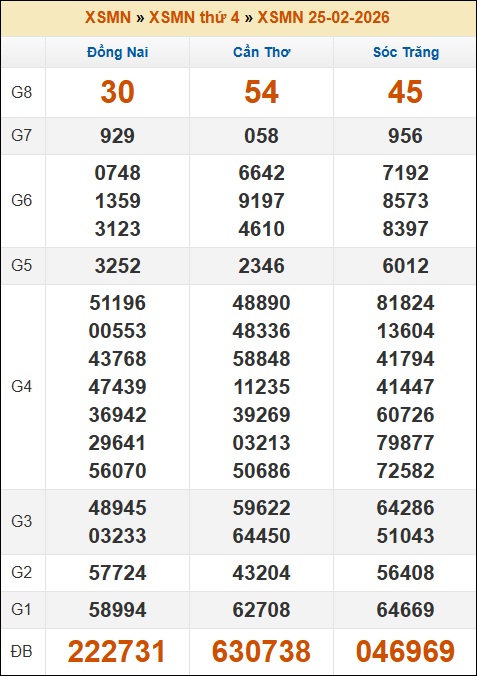 Kết quả xổ số Miền Nam ngày 25/02/2026 thứ 4 tuần trước