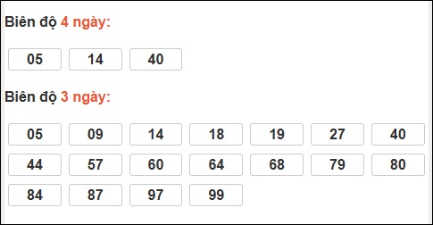 Đuôi 5: 18 ngày, Đuôi 4: 5 ngày, Đuôi 7: 4 ngày, Đuôi 2: 2 ngày, Đuôi 6: 2 ngày