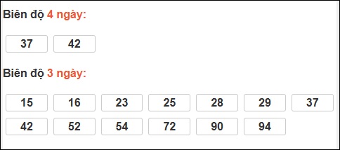 Đầu 7: 6 ngày, Đầu 1: 5 ngày, Đầu 9: 5 ngày, Đầu 5: 4 ngày, Đầu 0: 3 ngày