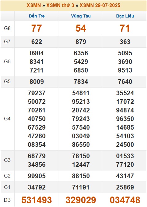Kết quả xổ số Miền Nam 29/7/2025 thứ 3 tuần trước