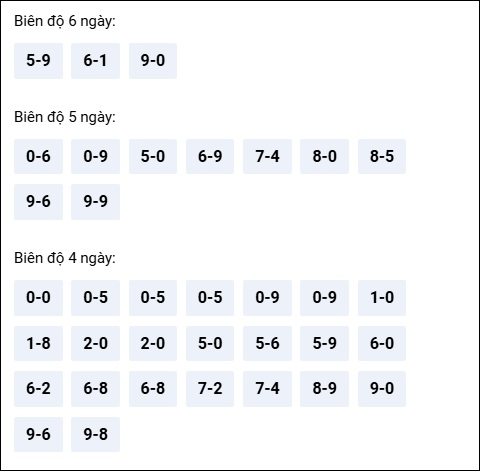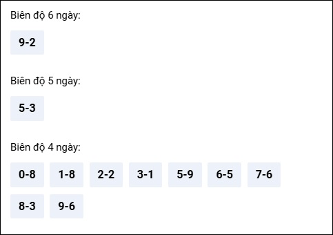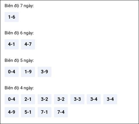 Đuôi 7: 6 ngày, Đuôi 2: 4 ngày, Đuôi 0: 2 ngày, Đuôi 3: 2 ngày, Đuôi 1: 1 ngày