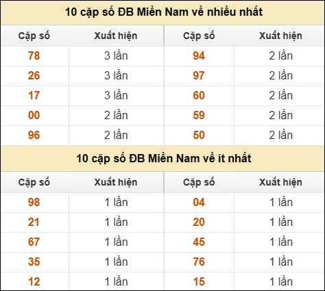 ⚡ 10 cặp số ĐB Miền Nam về nhiều nhất/ ít nhất tính đến ngày 07/04/2026: