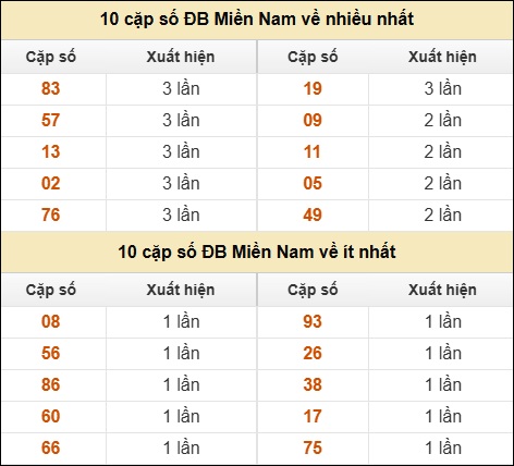 ⚡ 10 cặp số ĐB Miền Nam về nhiều nhất/ ít nhất tính đến ngày 09/04/2026: