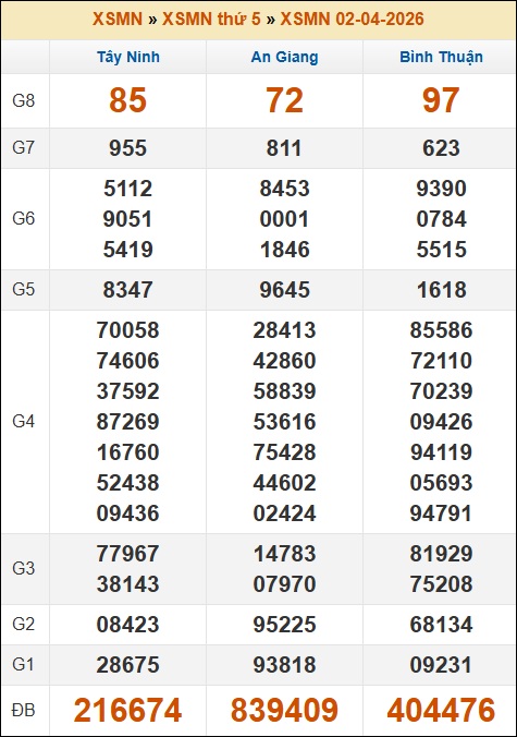 Kết quả xổ số Miền Nam 02/04/2026 thứ 5 tuần trước