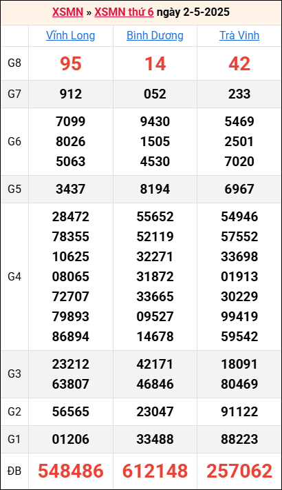 Bảng kết quả kỳ trước 2/5/2025