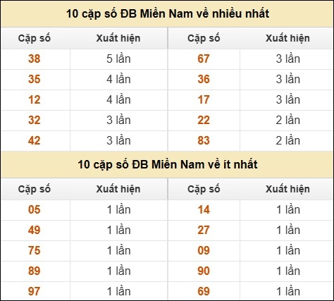 ⚡ 10 cặp số ĐB Miền Nam về nhiều nhất/ ít nhất tính đến ngày 9/8/2025: