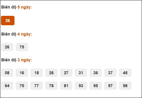 Đuôi 1: 7 ngày, Đuôi 6: 5 ngày, Đuôi 2: 2 ngày, Đuôi 3: 1 ngày, Đuôi 5: 1 ngày