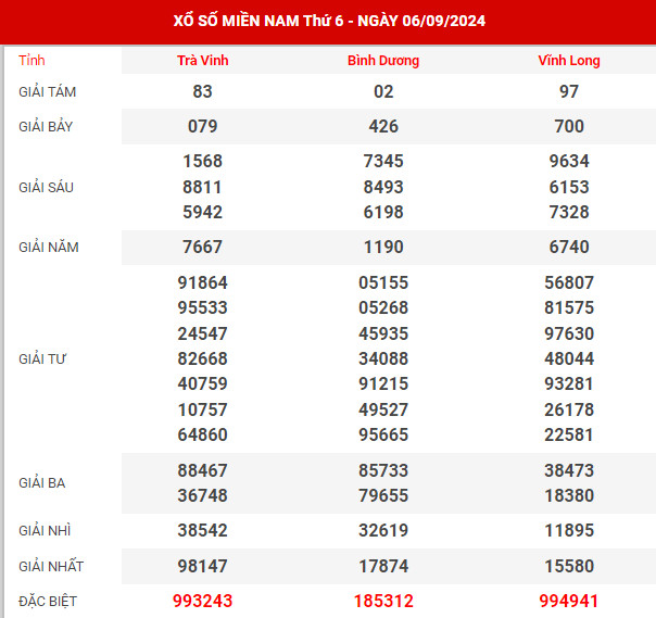 Trước khi cùng các chuyên gia dự đoán XSMN ngày 13/9/2024 của chuyên trang ldg.com.vn thì mời các bạn theo dõi lại KQXSMN mở thưởng thứ 6 tuần trước dưới đây nhé :
