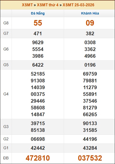 Kết quả xổ số Miền Trung 25/03/2026 thứ 4 tuần trước