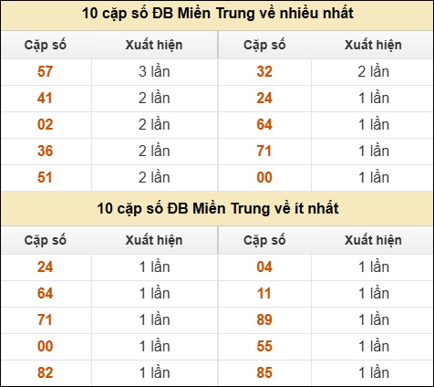⚡ 10 cặp số ĐB XSMT về nhiều nhất/ ít nhất tính dến ngày 01/04/2026: