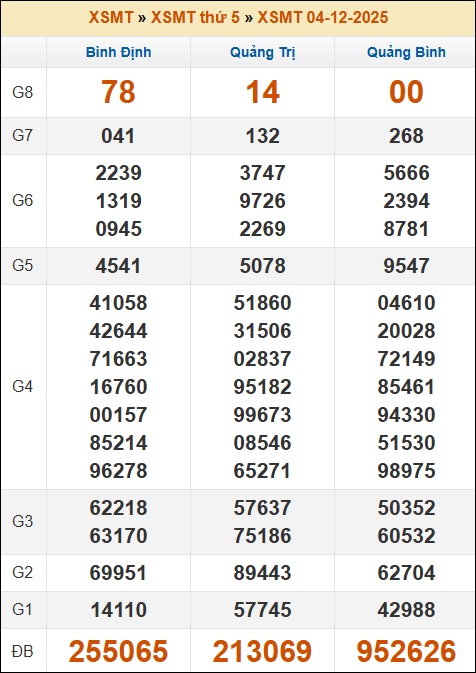 ⇒ Tham khảo số liệu thống kê tổng hợp kết quả XSMT ngày 11 tháng 12 năm 2025 chi tiết, theo từng tỉnh gồm có: loto về nhiều nhất, loto gan miền Trung, TK đầu - đuôi giải đặc biệt lâu chưa về nhất trong 10 ngày, 30 ngày gần đây, từ đó đưa ra nhận định xổ số miền Trung 11/12 hôm nay chi tiết nhất.