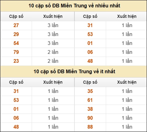 ⚡ 10 cặp số ĐB XSMT về nhiều nhất/ ít nhất tính dến ngày 12/01/2026: