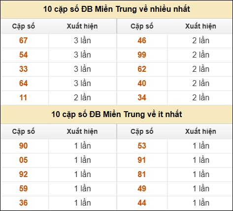 ⚡ 10 cặp số ĐB XSMT về nhiều nhất/ ít nhất tính dến ngày 12/04/2026: