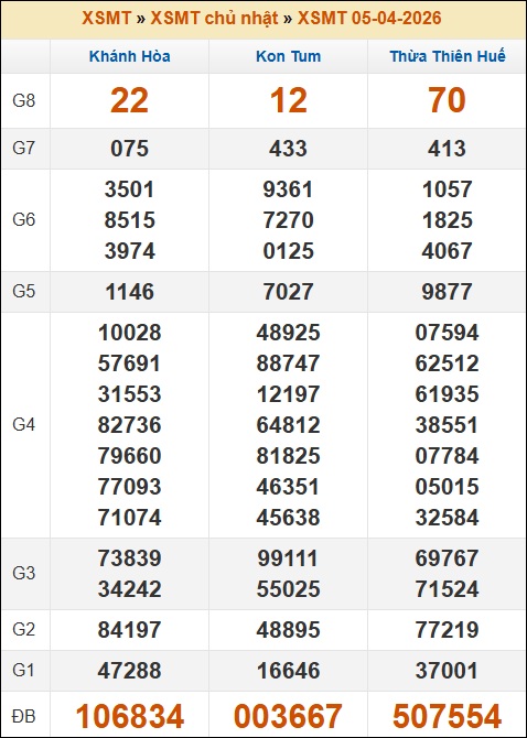 Bình luận kết quả kỳ quay trước, từ đó đưa ra nhận định kết quả XSMT hôm nay 12/4 gồm 3 tỉnh: Khánh Hòa, Kon Tum, Thừa Thiên Huế.