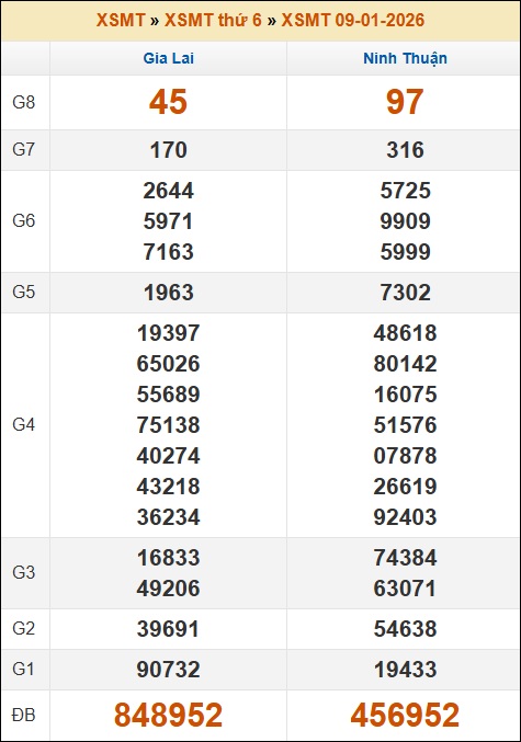 Kết quả xổ số Miền Trung 09/01/2026 thứ 6 tuần trước