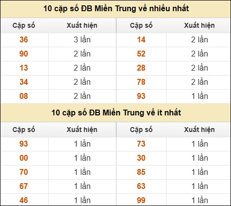 ⚡ 10 cặp số ĐB XSMT về nhiều nhất/ ít nhất tính dến ngày 16/01/2026: