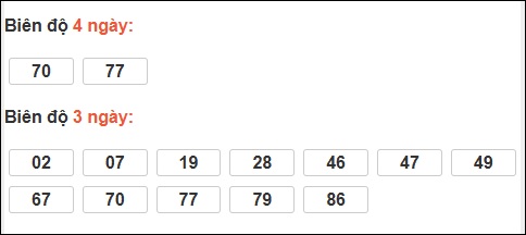 Đầu 8: 7 ngày, Đầu 7: 5 ngày, Đầu 9: 5 ngày, Đầu 0: 4 ngày, Đầu 4: 4 ngày
