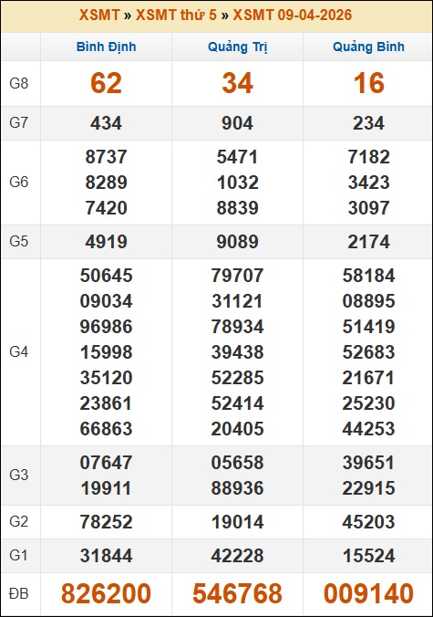 Kết quả xổ số Miền Trung 09/04/2026 thứ 5 tuần trước