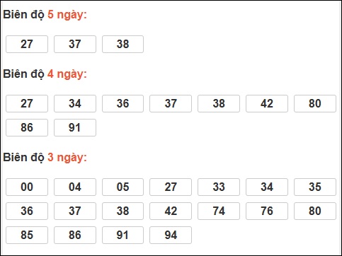 Đuôi 3: 16 ngày, Đuôi 6: 6 ngày, Đuôi 2: 5 ngày, Đuôi 4: 4 ngày, Đuôi 9: 3 ngày