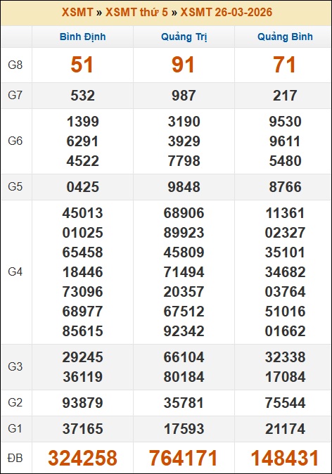 Kết quả xổ số Miền Trung 26/03/2026 thứ 5 tuần trước